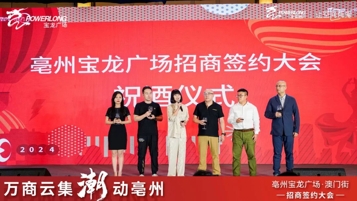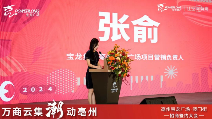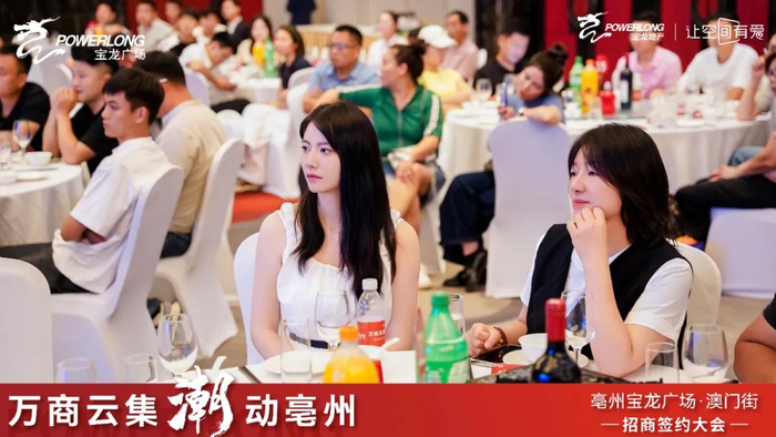 大会现场,200+品牌悉数出席,10余家媒体联合报道;各大运营商合作伙伴及各行业助阵,大家就品牌拓展方面,共同交流了商业发展新趋势。作为大会主办方,宝龙商业集团助理总裁兼招商管理中心总经理庞华女士、宝龙集团营销管理中心苏沪区域总经理郭庆斌先生、宝龙商业集团南京招商中心总经理王赓先生、宝龙商业集团招商管理中心餐饮专业总监刘虎先生、亳州宝龙广场项目营销负责人张俞女士、亳州商业公司总经理李伟先生等共同出席,畅谈商道。绘就亳州商业新蓝图,见证宝龙商业新活力。商业的筹开,犹如一艘巨轮的启航,而在这一过程中,地产公司的支持无疑是至关重要的动力源泉。从选址规划到建筑设计,从招商筹备到营销推广,每一个环节都离不开地产公司的精心布局与全力投入。