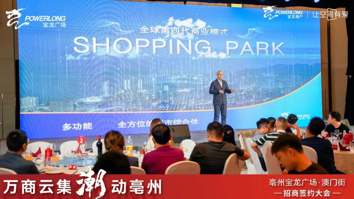 同时,亳州商业公司总经理李伟先生就亳州宝龙广场的区位优势,建筑设计,业态规划等展开详细介绍:宝龙集团倾力引入全球第四代商业模式--SHOPPING PARK,以9万平方米的商业 Mall ,3.7万平方米的滨水澳门街,2万平方米的高品质公寓,将亳州宝龙广场构筑起一座兼具传统底蕴与现代风尚的商业殿堂。