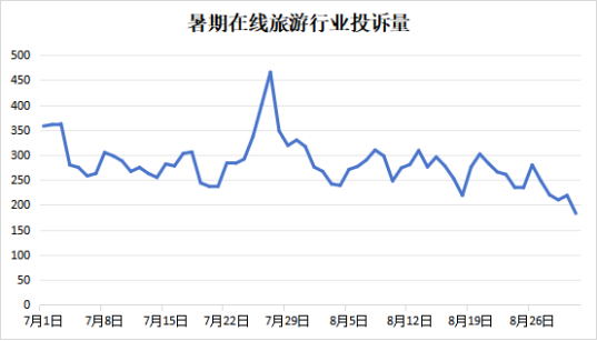 2024年暑期,随着旅游活动的增多,在线旅游相关消费投诉也迎来了小高峰,7-8月总投诉量高达17,494件,相较于5-6月增长幅度为20.72%。这一增长趋势反映了旅游市场在暑期的活跃度,同时也揭示了旅游服务中存在的问题。