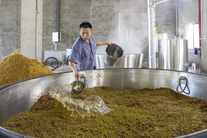 一直以来,白酒行业的生产方式都很“传统”。在酿酒环节,对空气温度、湿度的判断,以及粮食摊凉的时长,离不开酿酒师傅的体力和经验。