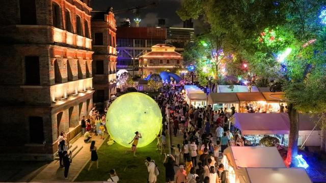中秋当晚,来自中国与法国的表演艺术家们联袂带来了“奔月”多国舞蹈光影演出。在今潮8弄百年建筑群落与即将于12月下旬开业的“滨港商业中心”之间的新旧共鸣“无边界舞台”上,中国雅韵与法国唯美接连绽放,涵盖光影、杂技、音乐、舞蹈等多种艺术形式,将中秋佳节的今潮8弄妆点得热闹非凡。