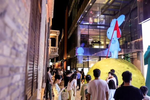 自9月2日“弄月·中西”海派中秋灯会亮灯以来,8组名为百舸争月、筑梦凝月、浮生闲月、震世探月、创世启月、探弄窥月、弄里抱月、琼楼眺月的巨型花样萌兔装置争相“跃”入滨港商业中心今潮8弄,百年弄堂以“天涯共月”为引,化作“中西对话”的浪漫之境。千姿百态的萌兔花灯吸引市民游客与外国友人纷至沓来,迅速赢得“上海萌力四射的兔兔灯会”、“既新潮又充满节日氛围感”等赞誉。而就在前几日,“震世探月”兔隆重登场,完成了今潮8弄今年海派中秋灯会的最后一块拼图,该装置以象征手法,情境化地再现了2024年嫦娥六号在月球背面成功探测的壮举,让观者也得以重温这一具有里程碑意义的事件,感受中国探月工程的非凡成就与民族自豪感。
