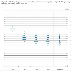 美联储点阵图显示,2024年底联邦基金利率预期中值为4.4%,此前为5.1%。在19位官员中,有2位认为在此次会议后,2024年不应再继续降息;有7位认为应再降息25个基点,有9位认为应再降息50个基点,有1位认为应再降息75个基点。