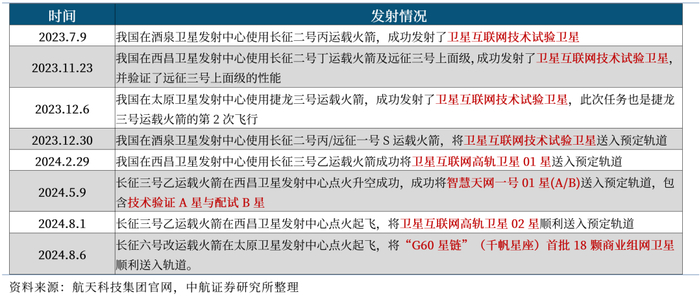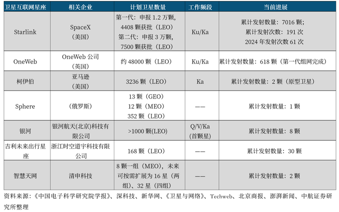 表8 全球主要中低轨卫星互联网卫星星座发射情况(更新日期:2024年9月6日)
