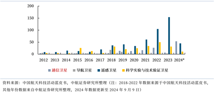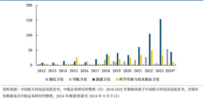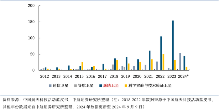 图29 2024年我国遥感卫星持续发射(单位:枚)(数据更新至2024年9月9日)