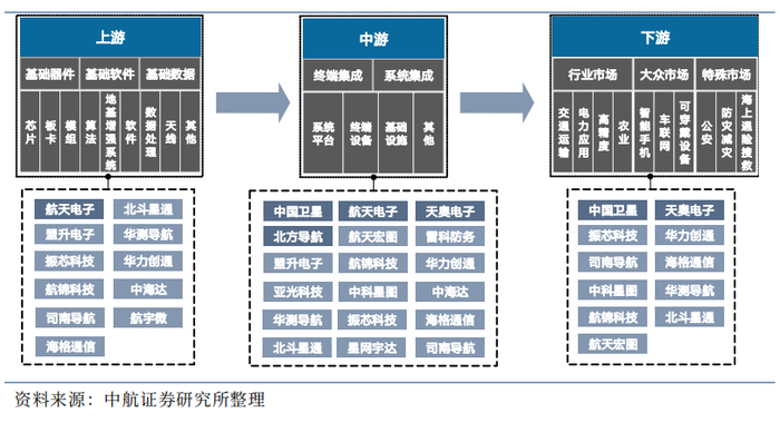 ① 重点关注北斗应用产业中上游领域具有明确市场布局或已经拥有较大市占率的企业。由于芯片、板卡、模组、数据处理、天线等基础器件和基础软件作为各北斗应用终端的共同设备基础,需求将伴随北斗应用市场下游的拓展保持稳定的增长,由于上游基础器件对企业在中下游市场拓展(价格以及性能层面)的影响重大,从当前各中下游厂商开始向上游拓展来看,北斗上游产业链的竞争会更加激烈,建议关注具有明确下游市场布局或已经拥有较大市占率的上游企业;