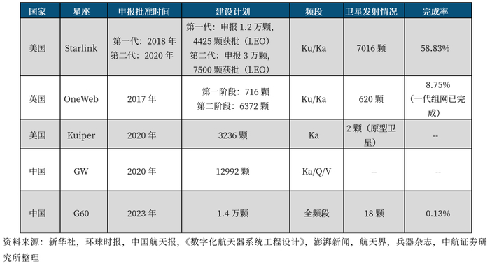 表9全球主要卫星互联网卫星星座申报及完成率情况(更新日期:2024年9月6日)