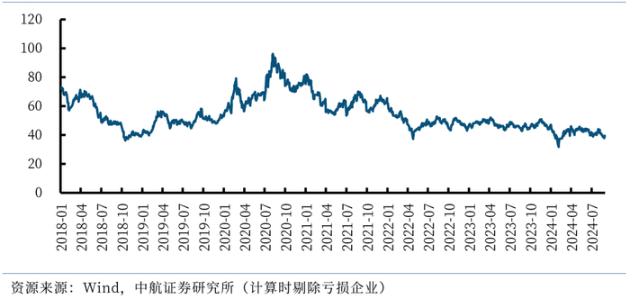 图38 中航证券航天行业指数市盈率(TTM)走势