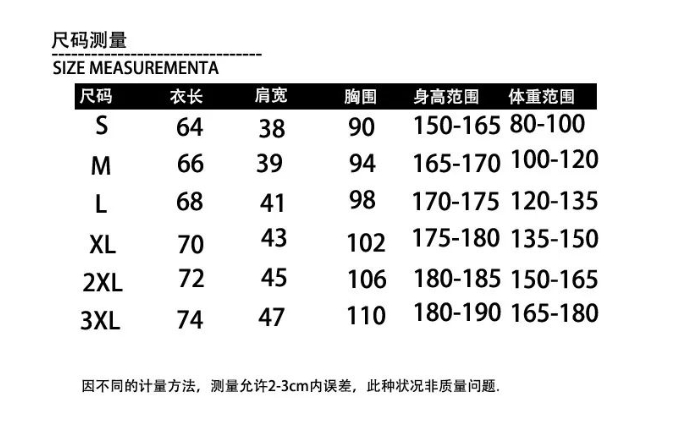 尺码也特别全,从s~3XL,80斤-160斤穿都没问题。大家可以根据尺码表挑选。