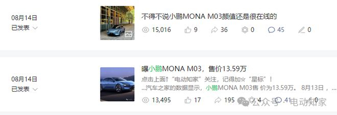 事实上,自小鹏MONA M03发布以来,我们也一直在关注,并且有数篇文章表达了对MONA M03优秀的赞美。