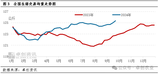 四季度是猪肉需求最旺季,但也往往是猪源供应最充足的时间段。一方面前置6个月前气温适宜、猪病平稳利好母猪繁育,新生仔猪成活率较高,兑现四季度供应能力增加;另一当面,2024年养殖盈利增加,逐步开启复产、增产,皆对应四季度产能供应端增量。因此,在供应增加的背景下,猪价的再度上涨就需要新因素注入动力。10月份为消费向腌腊季过渡阶段,市场仍有看涨大猪行情心态,带动二次育肥补栏热度小幅升温,意图消费旺季走货获取利润。另外,四季度市场需求向大猪过渡,养殖端为符合市场需求体重,被动压栏增重,带动短期流向市场猪源减少。二次育肥和压栏增重行为皆会影响市场短期供应节奏变化,在猪价下行压力的背景下,或带动短期猪价小幅抬头上涨。