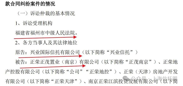 除了泰禾集团以外,兴业信托还与正荣地产发生诉讼纠纷!