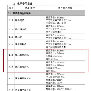 9月9日,工信微报微信公众号发文披露《首台(套)重大技术装备推广应用指导目录(2024年版)》。其中,在电子专用设备一栏,氟化氪光刻机、氟化氩光刻机位列其中。该资料显示,氟化氩光刻机具有65纳米以下的分辨率和8纳米以下的套刻精度。