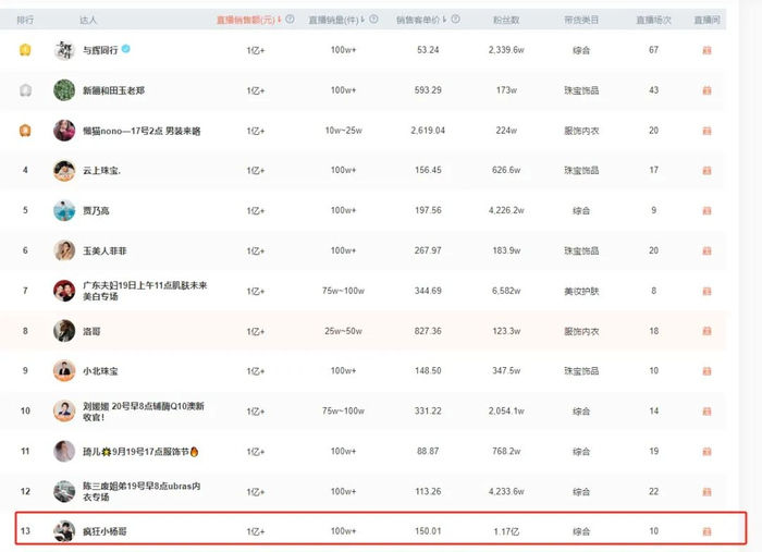 据了解,今年2月,小杨哥个人账号曾跌出了短视频直播达人带货榜前20名。面对质疑,小杨哥在直播时解释道,2月份仅直播带货1场,“不进前20很正常。”然而,在抖音直播3月达人带货榜TOP20中,疯狂小杨哥仍未在榜单内。