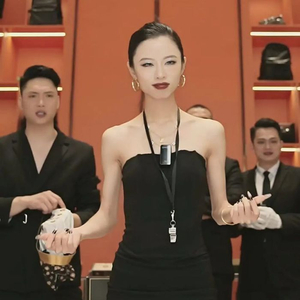 区别于刻板印象中男人爱看的黑丝短裙高跟鞋,澳门COCO姐一身小黑裙,化着烟熏妆,身后还站着几位西装男助理。