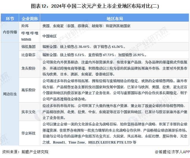 5、二次元产业上市公司二次元相关业务地区布局对比