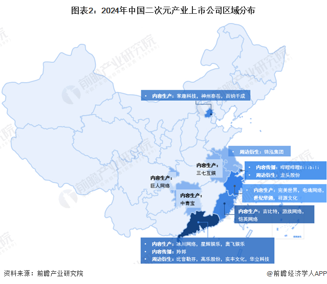 截至2024年,中国二次元产业上市企业地区布局情况汇总如下: