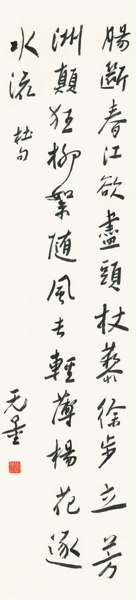 释 文:肠断春江欲尽头,杖藜徐步立芳洲。颠狂柳絮随风去,轻薄桃花逐水流。