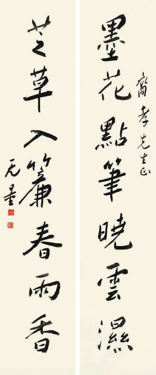 行书七言联《墨花芝草》