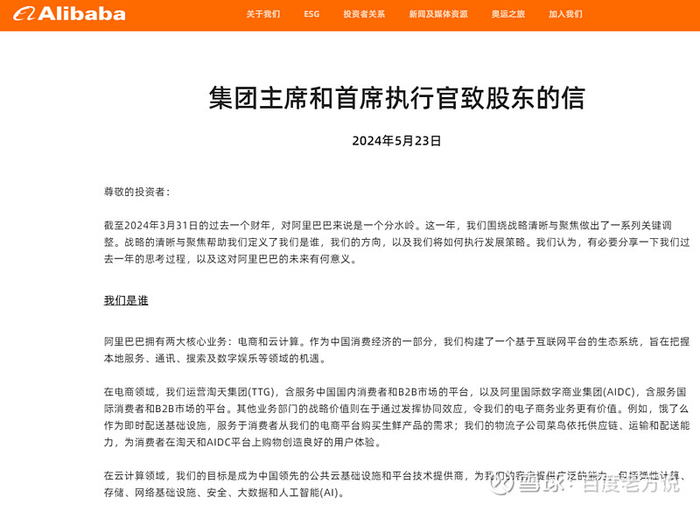 在5月23日《集团主席和首席执行官致股东的信》中,阿里就表明了自己的业务核心是电商和云计算。