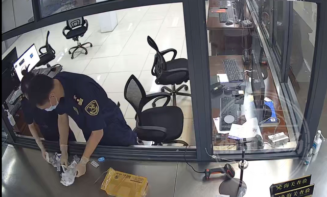 近日,南昌昌北机场海关关员在对一批进境邮件进行机检查验时,发现一票申报为“保健品”的邮件包裹图像显示异常。经人工查验,发现邮件内藏用彩页纸包裹着的浅蓝色药丸10板,共100粒。经送专业机构鉴定,确认上述药丸为国家管制的第一类精神药品三唑仑。