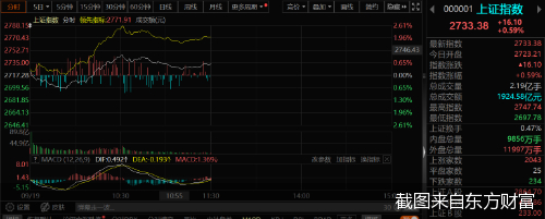 截至当日午间收盘,上证综指、深证成指、创业板指涨幅分别为0.59%、1.25%、0.99%,分别报2733.38点、8092.14点、1548.63点。