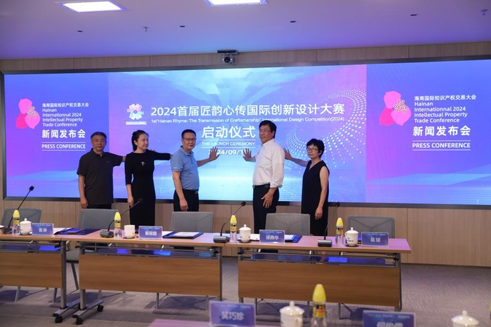 9月19日上午,在海南省海口市中交国际中心12B层自贸会客厅举办了“2024 海南国际知识产权交易大会新闻发布会”,一场国际知识产权领域的盛会即将拉开帷幕。大会由海南大学国际传播与艺术学院副院长张军军主持,中华文化促进会代表崔保国、中国国际商会海南商会副秘书长吴巧珍、海南大学国际传播与艺术学院副院长袁琳、山东大众报业集团半岛传媒副总经理徐燕华、大会组委会秘书长刘亚军,以及承办单位代表、中央驻琼媒体与本地媒体代表等出席新闻发布会。发布会同时宣布“2024首届匠韵心传国际创新设计大赛”正式启动、面向全国征集文创设计作品。
