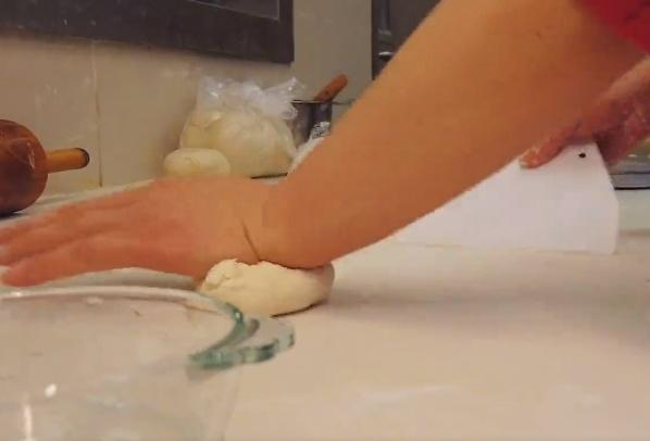 4、面团搓成长条后下剂,擀成片。