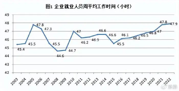 据国家统计局发布数据显示:2023年全国企业就业人员周平均工作时间为49.0小时,实现三连涨,创下20年来的历史新高。