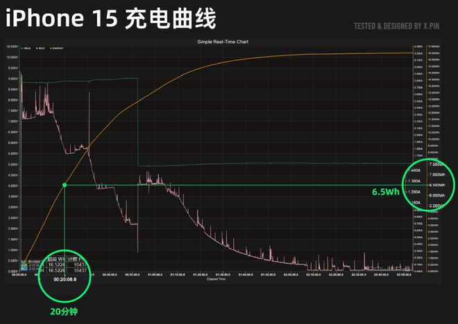 通过跟前代机型对比后,我们发现,在相同的条件下充电 20 分钟, iPhone 16 / 16 Pro 可以充入 6.8Wh 左右( 估算值 )的电量,而 iPhone 15 充入的电量为 6.5Wh 。