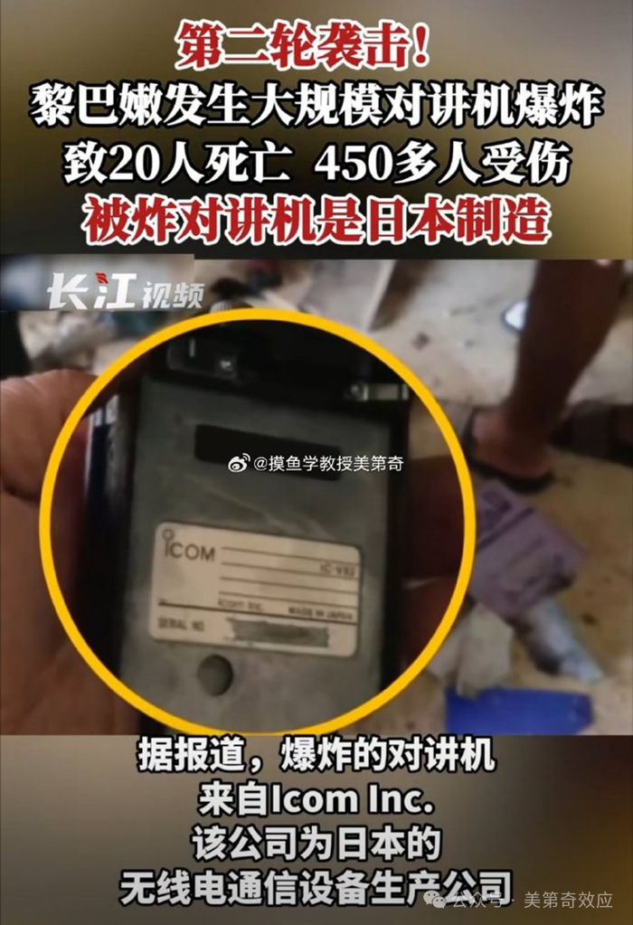 但就是这点商誉老本,最近怕是也要清空了。这次黎巴嫩传呼机爆炸之后,日本对讲机引爆了第二波爆炸,又炸死不少人。