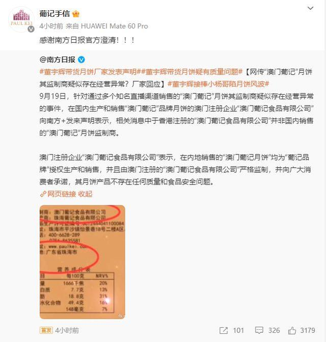 董宇辉带货的“澳门月饼”产自珠海?最新回应
