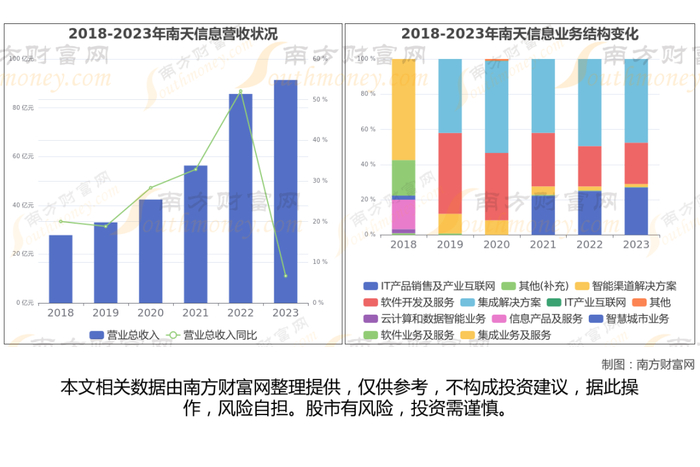 南天信息于1999年10月14日在深圳证券交易所上市,股票代码000948。公司主营业务为软件开发及服务,智能渠道解决方案,集成解决方案,IT产品销售及产业互联网,创新业务。