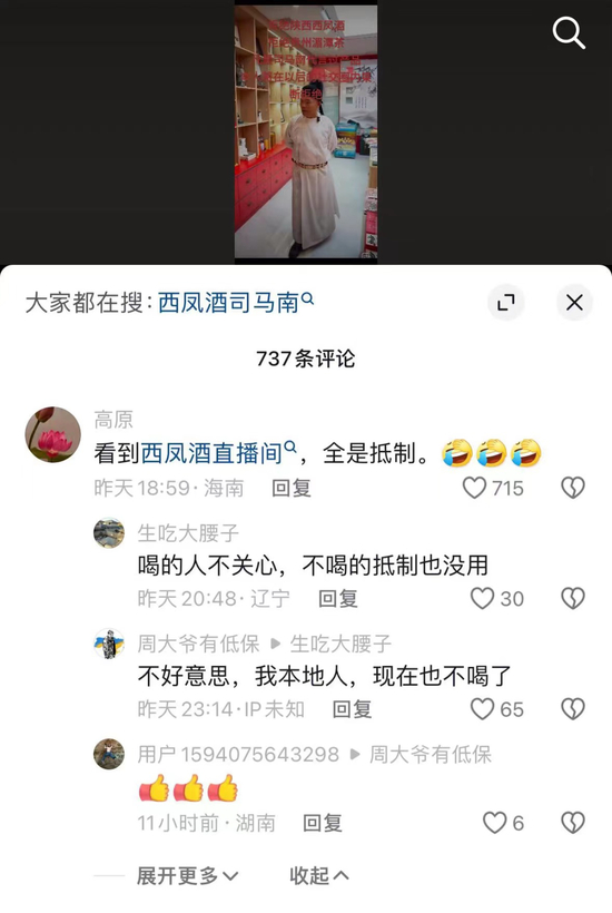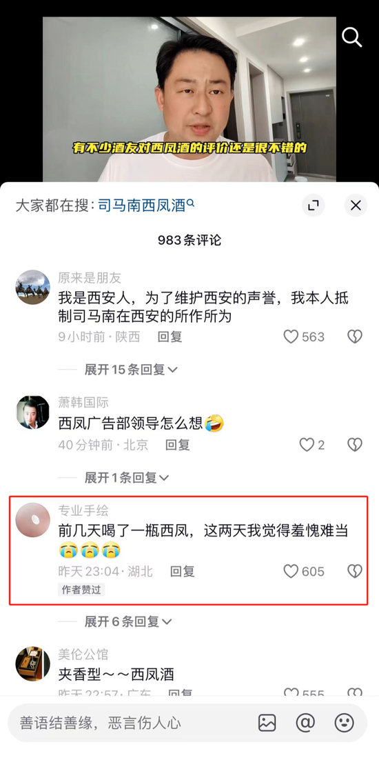 来自湖北的某位网友,也通过抖音留言表达了自身对这一现象的感受:前几天喝了一瓶西凤,这两天我觉得羞愧难当!