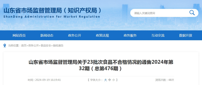山东省市场监督管理局关于23批次食品不合格情况的通告2024年第32期(总第476期)