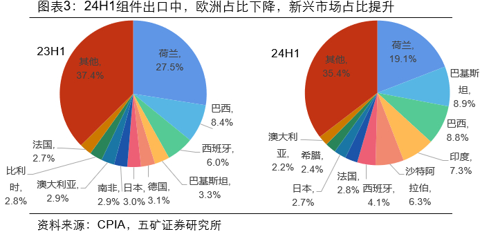 24H1需求良好,组件出口中欧洲占比下降
