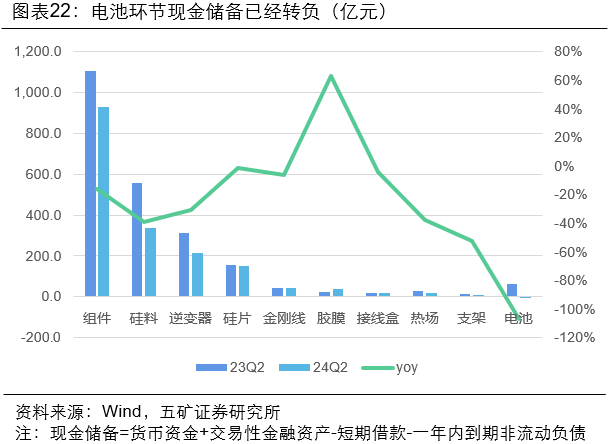 2.电池行业现金储备已经转负,因此电池环节率先出现大型并购事件(如通威收购润阳、一道新能等电池企业寻求买家)。