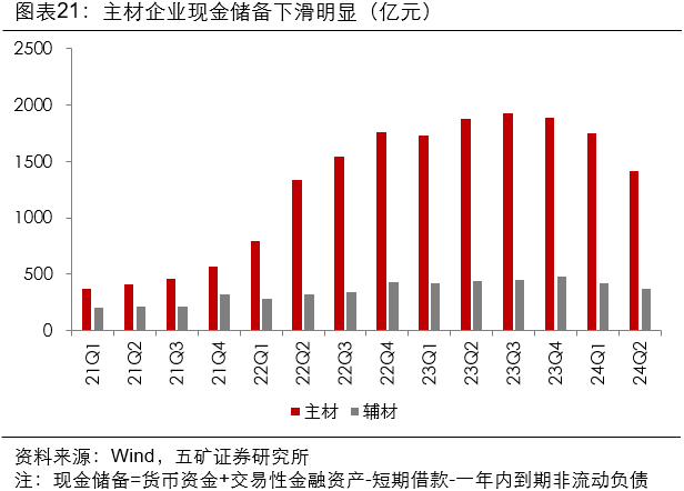 1.24Q2行业公司现金储备持续下滑,主材环节降低明显。