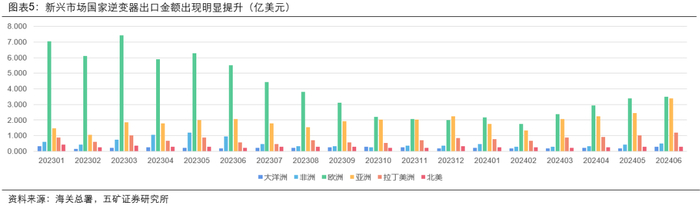 1.主要新兴市场,在24年3月开始呈现较为明显的逆变器出口提升,比欧洲环比改善更为迅速。