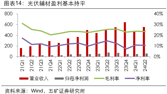 2.辅材盈利性环比维持稳定,整体营收利润主要随24Q2的出货量环比提升而增长。