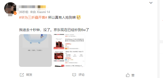还有很多网友同样在蹲守,大部分都表示没有抢到,还有网友表示,现在京东已有某些店铺挂出,售价已经到6万元。