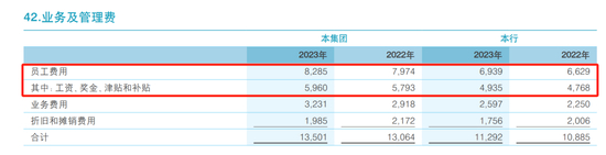 年报数据显示,2023年国开行员工工资、奖金、津贴和补贴支出费用为59.6亿元,比上年多了1.67亿元,同比增长2.9%。