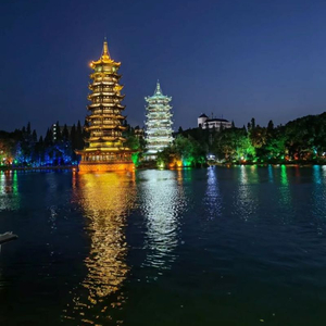 日月双塔是桂林市标志性地标,也是两江四湖环城水系中最著名的旅游景点。于丽丽/摄