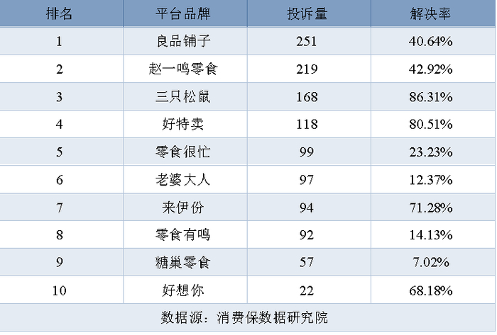 良品铺子投诉量最高