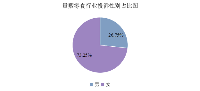 根据消费保数据,量贩零食行业男性用户投诉比例为26.75%,女性用户投诉比例为73.25%。