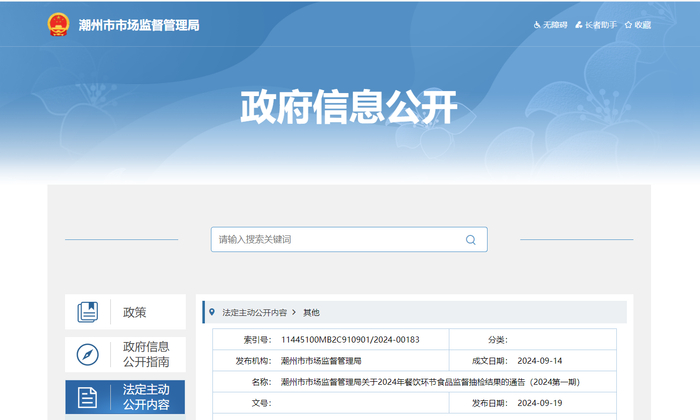 近期,潮州市市场监督管理局组织对2024年餐饮环节食品安全监督抽检,现将10批次食品抽检合格信息予以公示(见附件)。