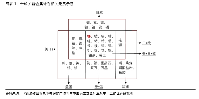 作为全球《关键矿产》清单的交叉品种,历史上我国曾对其执行 “稀土”的待遇。根据最新美国、欧、澳、日的《关键矿产清单》 、《投资国家安全审查指南》及 《关键矿产战略》,锑皆为国家战略储备资源名录中的“座上宾”。