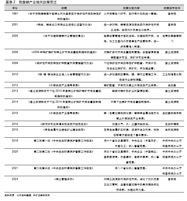 回顾我国对锑的管制中有开采管制、环保治污、规范对外出口三大手段。 2010 年前后以强制性的开采总量控制指标、勘察管理办法监管的方式进行管理,后续通过环保排污、绿色与安全的方式进行管理,最新的《稀土管理条例》中,以行政立法的形式规范小金属的开采总量控制、支撑需求侧战略新兴发展。