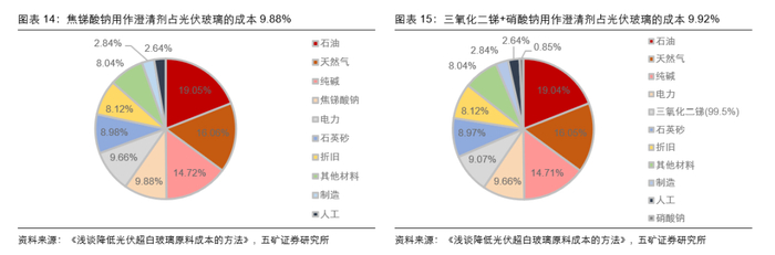 “助攻手”的需求应用特性,给锑需求带来了涨价下较强的需求粘性。 以锑在玻璃陶瓷中应用为例,焦锑酸钠在在使用中,按照 0.2~0.4% 的质量配比,目前锑系澄清剂占光伏玻璃成本比重在 10% 左右。