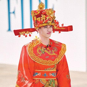 庆怜在《披荆斩棘4》中把自己装扮成“财神爷”。